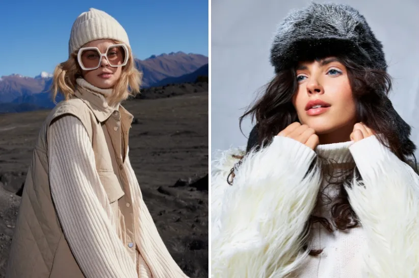 - Dla kobiet idealne są berety, kaszkiety, czapki beanie (przylegające i oversize) oraz kapelusze (fedora, z szerokim rondem).